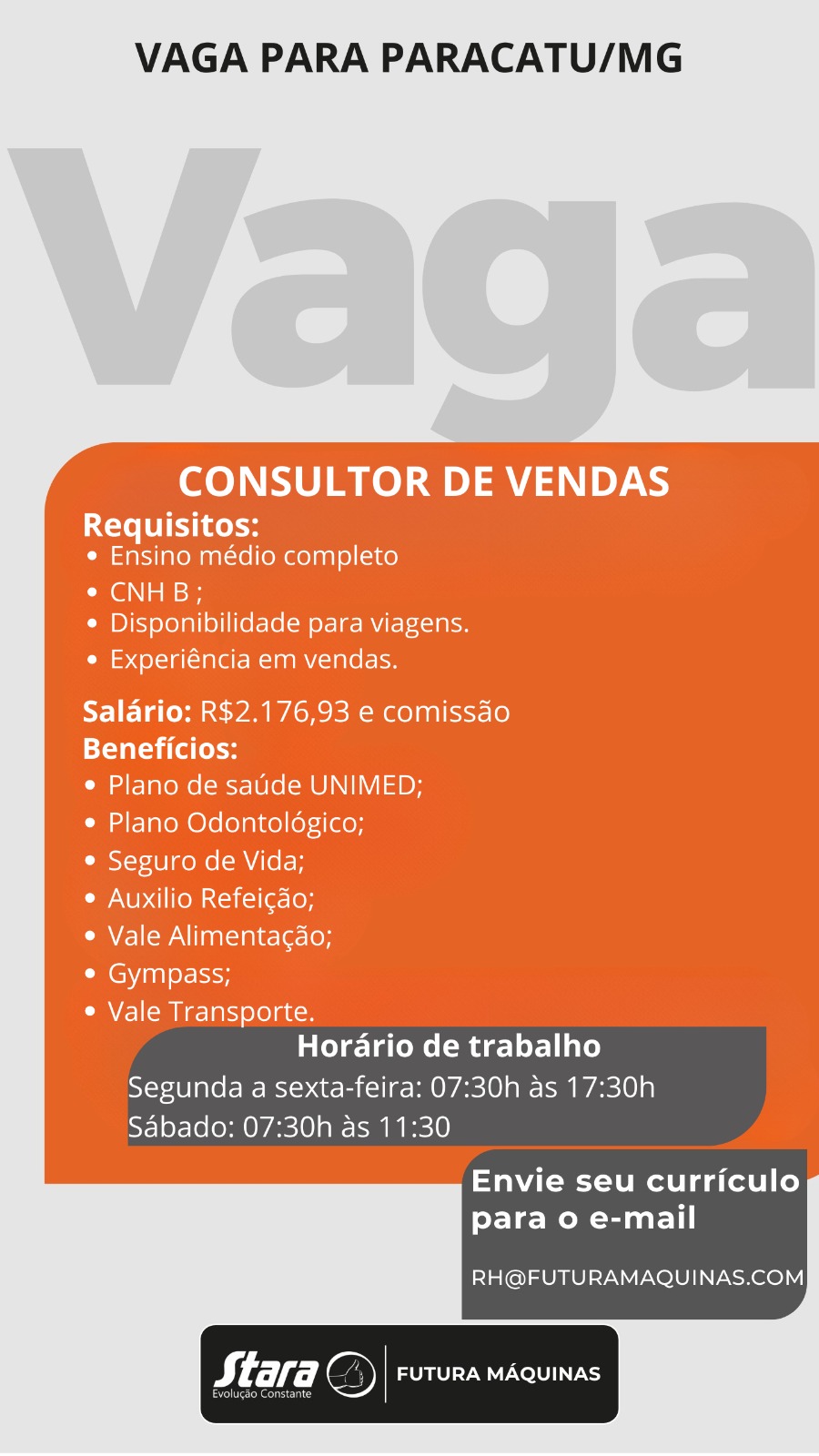 - Consultor de Vendas - com atuação em Paracatu/MG