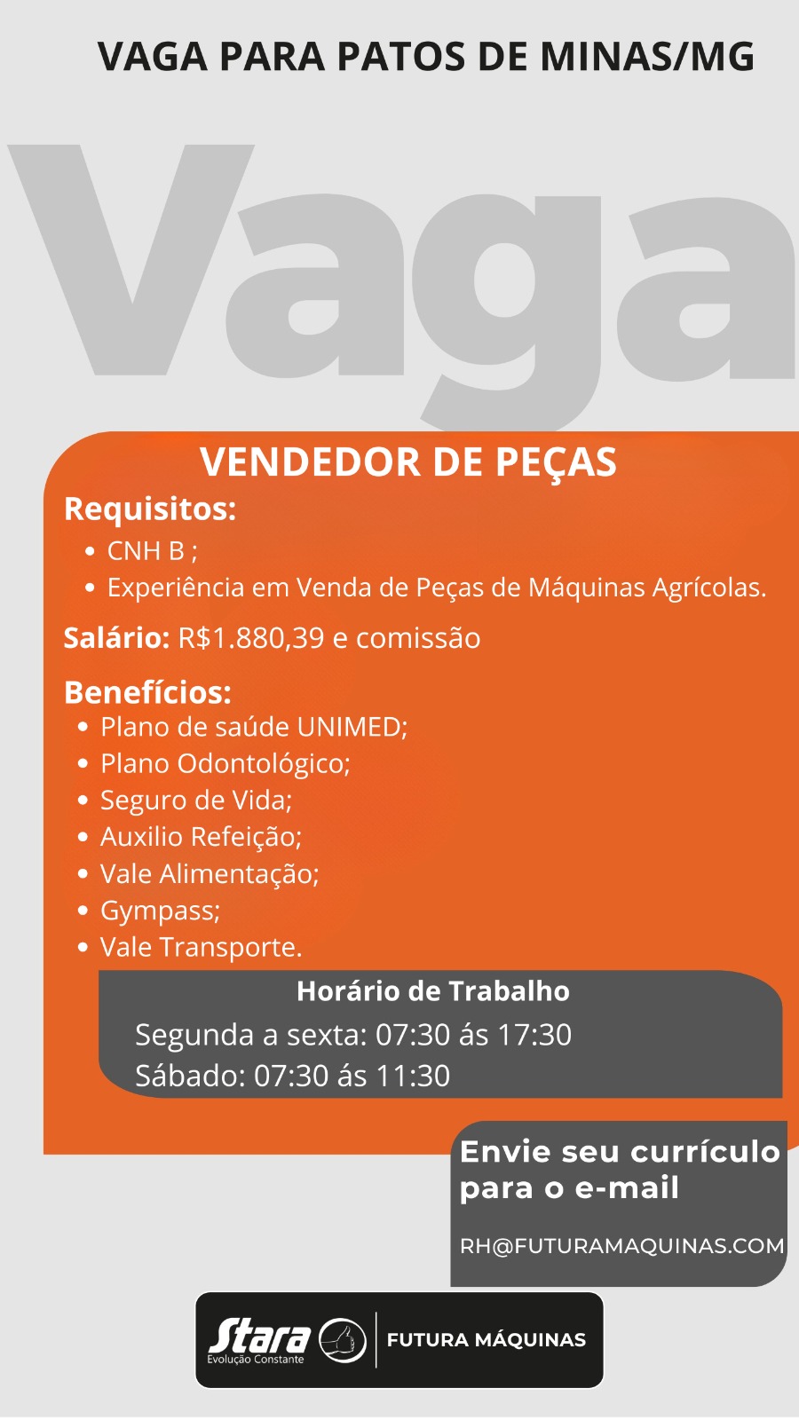- Vendedor de Peças - com atuação em Patos de Minas/MG