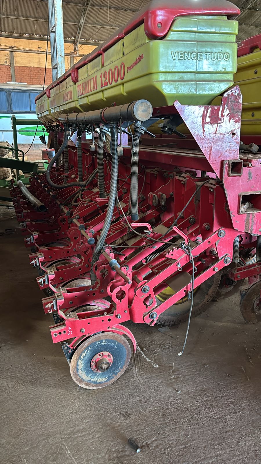 Plantadeira Vence Tudo PM 400 12x45, com adubo Precision Planting e acionamento mecânico, ano 2018. Equipamento em bom estado, com revisão leve.